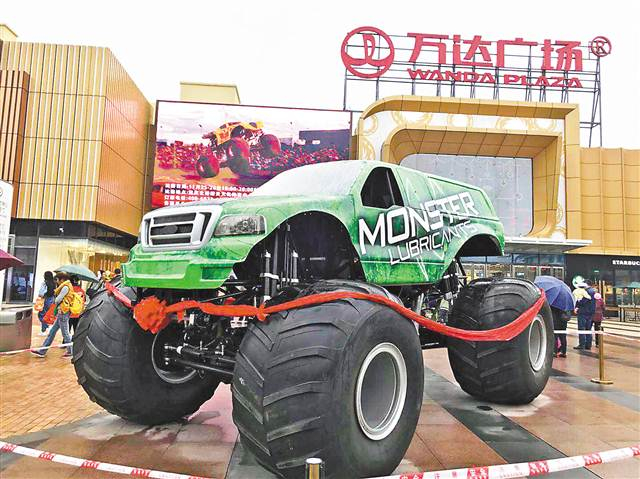 11月18日当天,记者在怪兽卡车现场展示活动中看到,怪兽卡车高、宽近4米,长达5米,车轮直径超过1.5米,拥有1500马力的超强动力系统,发动时的巨大轰鸣声很有震撼力,车身上还有各种漂亮的涂鸦。