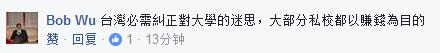 “宁缺毋滥。”有台湾网友表示,将来会有不识字的大学生出现。也有网友认为:“台湾必须正对大学的迷思,大部分私校都以赚钱为目的。”也有网友讽刺,台湾的大学正迈向小学化。