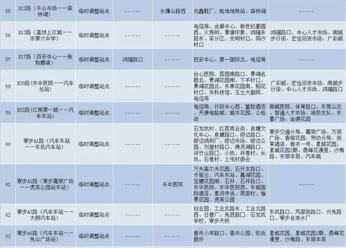 线路的有关临时调整情况如下: