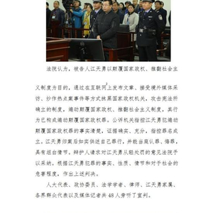 原标题:江天勇犯煽动颠覆国家政权罪获刑2年 当庭表示不上诉