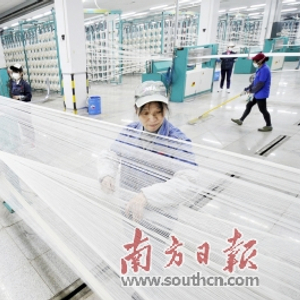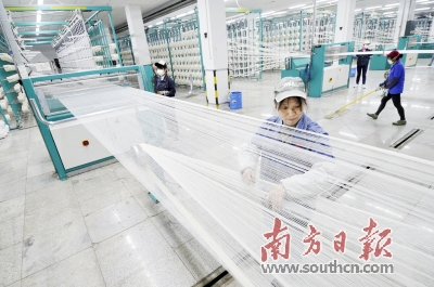 在佛山南海西樵山下,3万多台织机正快速运转,“轰隆”声中,细长的白色纱线经过织造、染整,“变”成一块块工整的面料,再被迅速打包装上货车,运往优衣库、LEE、ZARA、TOPSHOP、七匹狼等国内外知名服装企业。