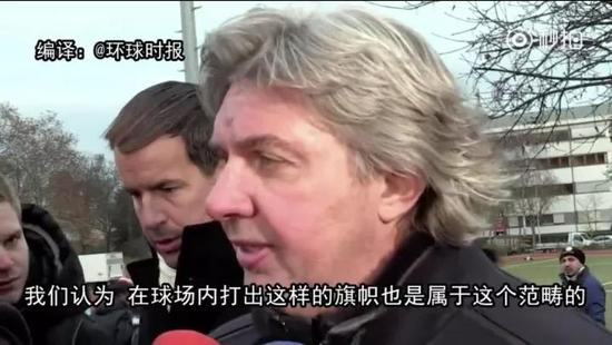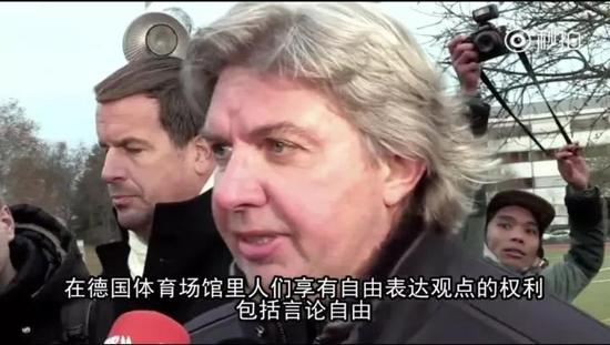 此前以“球场有言论自由”回应这一事件的德国足协副主席齐默曼对《图片报》表示,“我不参与猜测。”《明镜》周刊21日称,德国足协主席格林德尔首次就这一事件表态,称中国人“必须接受民主的抗议”。《图片报》称:“有一点很清楚:德国足协不会阻止球场言论自由。而且,如果中国球迷像第一场比赛中那样抢夺横幅和旗子,那么法兰克福人不会回避报警。”