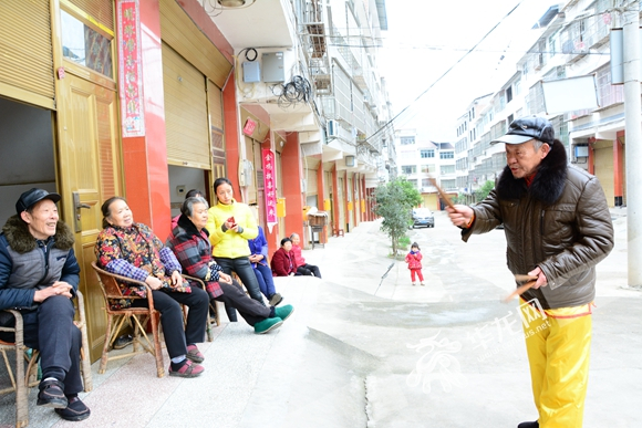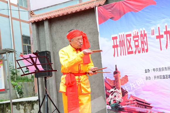 华龙网11月24日15时讯(首席记者 张雅萍 通讯员 向萍)“各位父老乡亲歇一歇,听我给你们唱一折,十九大春风吹得好,容我慢慢给你摆个白……”近日,在重庆开州汉丰街道迎宾社区小广场,一位七旬老人敲打着金钱板,伴随着金钱板有节奏的清脆响声,老人满脸笑容,乐呵呵地说唱着……他的周围,围满了群众,大家不由自主地拍起巴巴掌,给老人打拍子……
