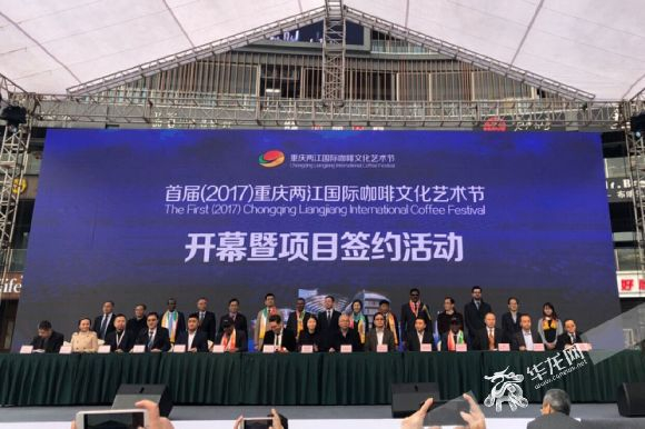 在活动举行的项目集中签约仪式上,两江新区与漫咖啡、ZOO COFFEE、I’m cafe签订总部入驻协议,这三家咖啡界知名企业将把中国区总部落户到两江新区。重庆市能源投资集团与重庆高速集团、重庆旅游投资集团签约,双方将通过高速路的服务网点及旅游集团旗下的旅游景区、游轮等旅游资源平台,推广咖啡产品和咖啡文化的传播。届时,市民可在高速公路服务区、游轮等场所品尝来自各国多地的不同口味的咖啡。