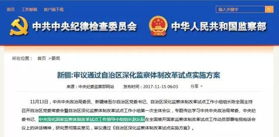 此前,新疆也通过了本地的实施方案。据了解,这个方案还要报中央深化国家监察体制改革试点工作领导小组批准。