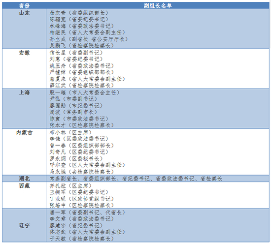 此外,上海、山东、安徽、内蒙古的副组长名单中还有省级人大常委会的主要官员,上海的是正职,其他是副职。