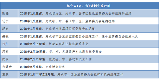 前面提到,中办印发的方案提到的时间点是今年底明年初成立三级监委,各省也依照中央要求,提出了自己的进度表。
