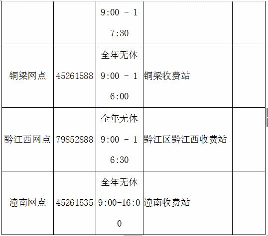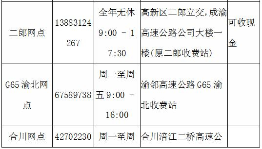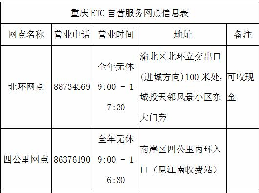重庆ETC自营服务网点信息表
