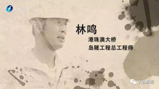 公开资料显示:林鸣,中国交建总工程师,自2010年12月起,担任港珠澳大桥岛隧工程项目总经理、总工程师,率领数千建设大军奔赴珠江口伶仃洋,开始了攀登世界工程技术高峰的创新之路。其曾被授予“全国劳动模范”、“2014年感动交通十大年度人物”称号。