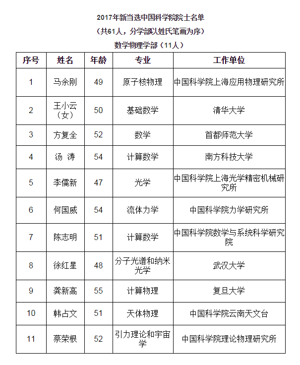今天上午,中国科学院网站公布公布2017年中国科学院院士增选当选院士名单。根据《中国科学院院士章程》和《中国科学院院士增选工作实施细则》的规定,2017年中国科学院选举产生了61名中国科学院院士和16名中国科学院外籍院士。