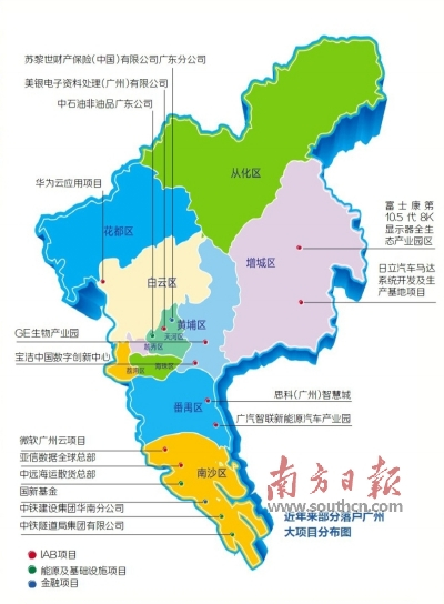 今年以来,富士康、思科、GE生物科技园、麦格纳集团等一批世界500强项目落户广州。从番禺到南沙,从广州国际金融城到广州开发区再到增城,项目布局呈现出沿城市的交通脉络向外延伸,沿中心向城市外围布局,以辐射带动能力串联起城际联系等特点。