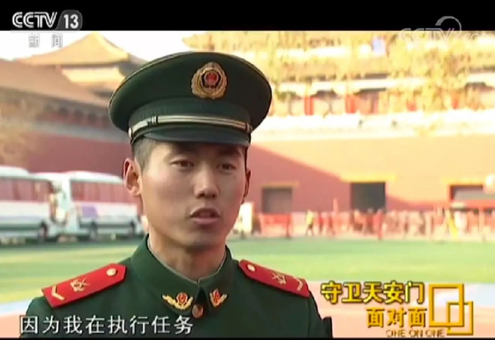 孙广盛:我们在广场执勤的哨位,和解放军战士还不一样,解放军战士是养兵千日用兵一时,我们是养兵千日,用兵千日,执勤就是战场,我们上哨就是在打仗,每天都是打仗,上哨就是我们的一线,所以一旦遇到这样的情况,肯定是奋不顾身,肯定保护国家人民的利益安全。