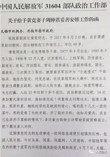 前线哥了解到,黄竞后事处理结束后,解决其家庭难题被旅党委列为重点工作。