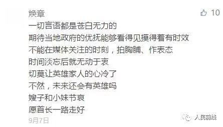 网友们在感动之余,更多地在后台留言,期待相关部门做好英雄家属的善后工作,传递温暖、付出真情,以宽慰家人、告慰英灵!
