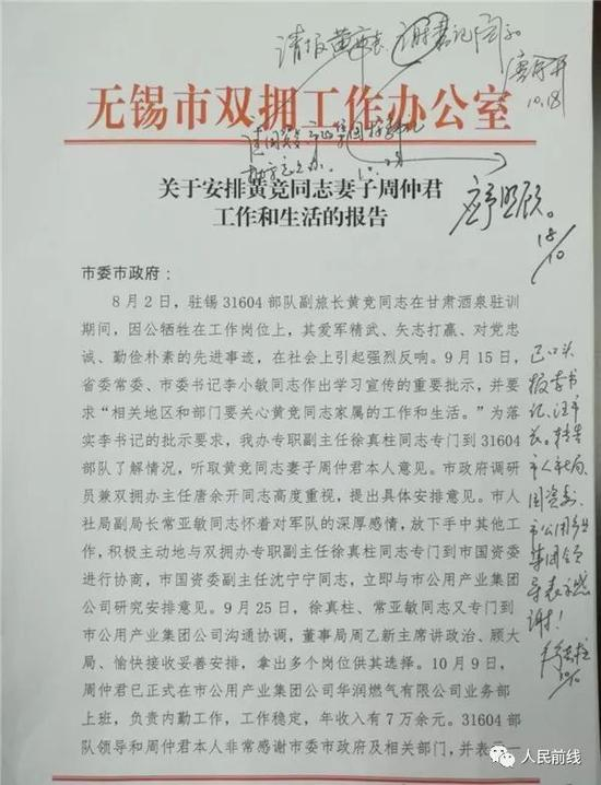 省委常委、无锡市委书记李小敏批示,要求“相关地区和部门要关心黄竞同志家属的工作和生活”。