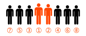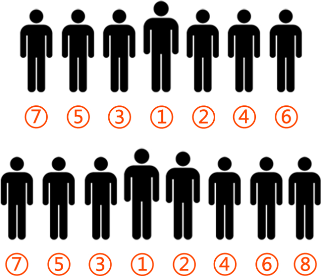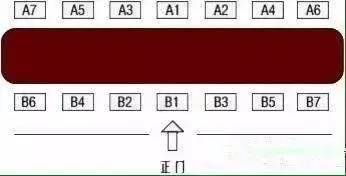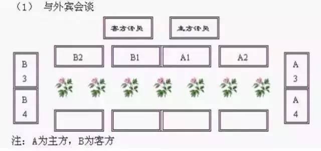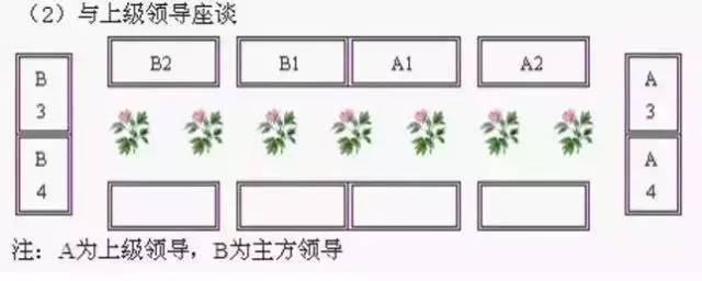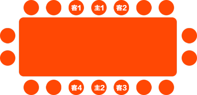 领导为偶数时,1、2号领导同时居中,2号领导依然在1号领导左手位置,3号领导依然在1号领导右手位置。可参见下图的座次排列图: