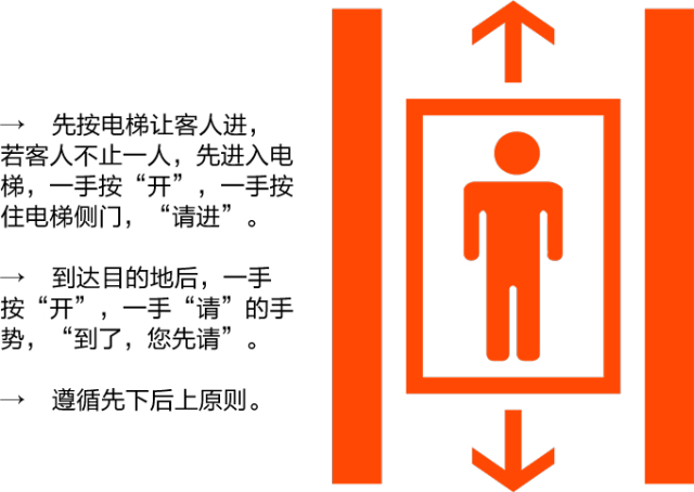 (5)旅行车接送客人:旅行车以司机座后第一排,即前排为尊,后排依次为小。其座位的尊卑,依每排右侧往左侧递减。