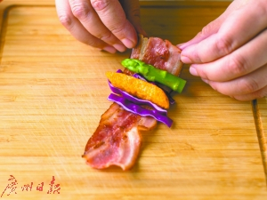 | 用培根将菜包裹起来 |