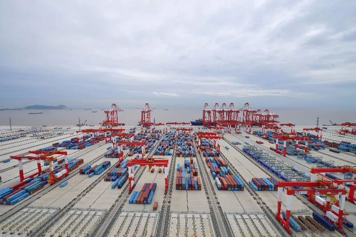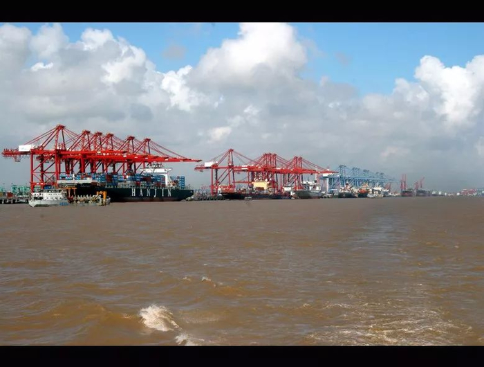 洋山港是上海港的一个港区,位于杭州湾东北部,长江和东海交汇处,一手牵着长江经济带,一手挽起海上丝绸之路。洋山港第四期建成后,整个上海港年吞吐量将突破4000万标准箱,这个数字是全美国所有港口加起来的吞吐总量!也是目前全球港口年吞吐量的十分之一。