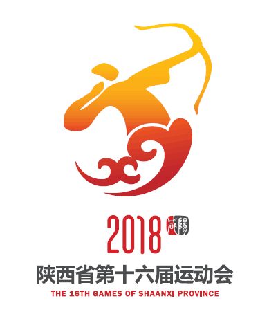 会徽《秦韵》充分概括设计理念、承载信息;“韵”音谐“运”,秦韵即秦运,突出传递陕西、运动的概念。创意源于秦画像砖射箭俑。射箭属于六艺中的“射”术,是中国最早的传统竞技项目之一。“秦人善射”。以秦画像砖射箭俑为主体,配合咸阳英文首字母XY构成的跪射俑形象,包涵陕西、秦人、运动等含义,具备陕西特色、咸阳元素。辅以2018和咸阳LOGO,说明陕西省第十六届运动会2018年在咸阳举行。人物造型呈利箭将发之势,有一跃而起、一发冲天的动感。既代表陕西健儿勇攀运动高峰的豪迈之情,又寓示陕西体育事业蓬勃发展,还体现“更高、更快、更强”的体育精神。整体色彩为中国传统喜庆色彩金、红两色,具有活力、热情、吉祥的气质。整体图形线条流畅简捷、灵动活泼,富有张力,彰显陕西及成阳深厚的历史人文底蕴、强劲的发展势头。