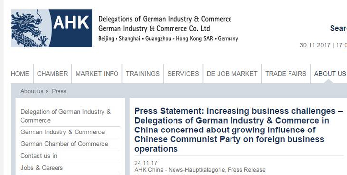 然而,德国大使这个存在很大问题的指控,却又被中国德国商会直接采用了。中国德国商会的官方网站就在11月24日刊登了一篇措辞同样强烈的声明,要求中国方面停止“这些企图干涉外资企业的做法”,否则“德国企业不排除会从中国撤资”。