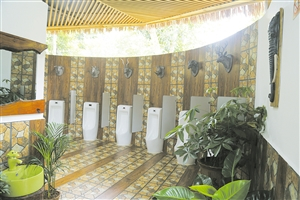 海南热带野生动植物园公厕内独特的设计元素。