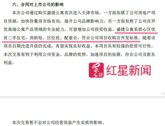 公告中称,盛捷公寓系核心区优质二手住宅,房龄短、区位优、配套全,符合公司项目收购及开发标准。(见下图)