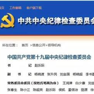 10月底,十九届中央纪委书记、副书记、常委名单相继公布,根据名单情况,由中央纪委书记赵乐际带领的打虎班子中,共有19个中央纪委常委(包括中央纪委书记和8个中央纪委副书记)。