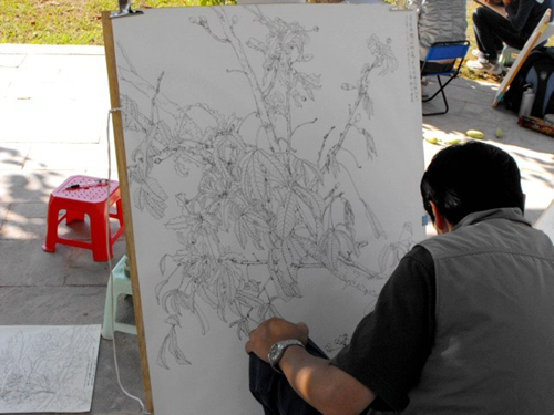 “没有谁教我写生,每次去都非常震撼。学生们对雨林的赞美,促使我要画好、表现好雨林,我在向学生传授写生经验时,也是总结我自己绘画技法;我选择高难度的、结构复杂、花叶繁密植物绘画,之后对学生有很大的引导作用,自己也有成就感。有想画得更好的欲望和冲动,十五年来,自己的写生技能得到很大的发展。”苏甦表示。