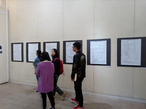 西南大学美术学院和西南大学新闻传媒学院研究生跨学科学术沙龙同期举行,苏甦大花鸟作品也一并展出。