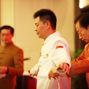 “带艺徒是指这两位弟子在拜居长龙大师之前已经拜了师傅,他们再拜师居大师,需要得到他们授业师傅的同意。”扬州烹饪协会秘书长邱杨毅告诉记者,在现场得到师傅的同意后,这两位弟子与其他21人一同拜师。