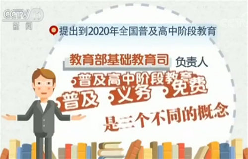 今年教育部等四部门提出到2020年全国普及高中阶段教育。教育部基础教育司负责人表示,“普及”“义务”和“免费”是三个不同的概念,“普及高中阶段教育”重在解决有学上的问题,不是将高中阶段教育纳入义务教育或者实施免费教育。截至2016年,我国九年义务教育巩固水平已达93.4%,但义务教育发展不平衡、不充分的问题仍然突出。未来一段时间,进一步提高义务教育巩固水平和均衡发展水平的任务仍然繁重。下一步要重点做好普通高中建档立卡家庭经济困难学生的免费工作。