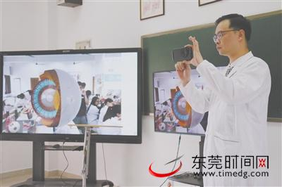 李哲使用AR技术教学(通讯员 柯建纯 摄)