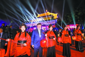 在迎宾设置方面,会场充分运用了传统文化元素。迎宾人员是一排身着汉服的女子,她们提着红灯笼,面带微笑,引得外国朋友纷纷合影。就连晚宴的开幕主持人,也是着汉服,行汉礼,这些别具匠心的设置,让许多外国朋友赞叹“很特别”。