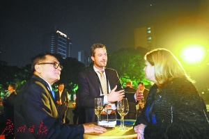 与会嘉宾吃什么?广州日报全媒体记者在现场看到了晚宴的菜单,菜式按照西餐设计,符合外国友人的习惯。菜单包括头盘、汤、主菜、甜品,另有两款葡萄酒佐餐。