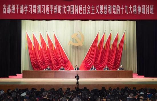 12月6日上午,省部级干部学习贯彻习近平新时代中国特色社会主义思想和党的十九大精神集中轮训第一期研讨班在中央党校开班。王沪宁、丁薛祥、杨晓渡、陈希、郭声琨、黄坤明同在主席台就座。