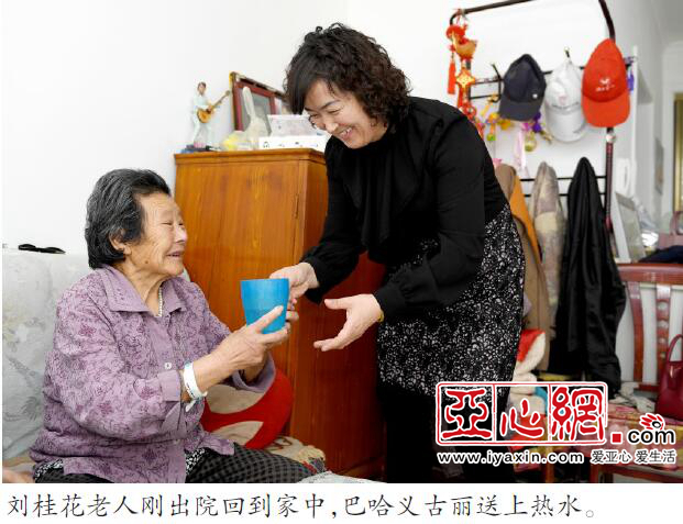 亚心网讯 (文/记者代筱晔图/记者谢鹏)“刘桂花,你女儿来啦,快起来吃饭吧,又给你们带什么好吃的啦?”12月6日,在吉木萨尔县医院内,护士的话音刚落,巴哈义古丽·尼合买提已经提着饭盒进了皮肤科病房。她就是护士口中刘桂花和刘国群老人的女儿。