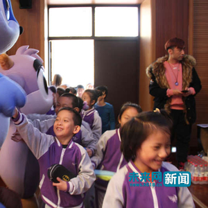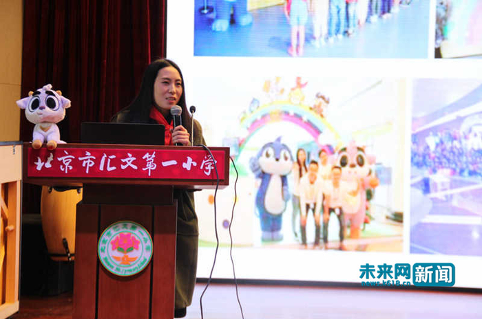未来网(www.k618.cn中央新闻媒体)北京12月8日电(记者 周鑫)“哇!是蓝宝!我能跟你握个手吗?”刚走进报告厅,汇文第一小学的孩子们就被《鹿精灵》里面经典的角色小鹿迪尔和小猴子蓝宝吸引了。他们纷纷伸出手想要跟这两个可爱的“大家伙”来个近距离接触。