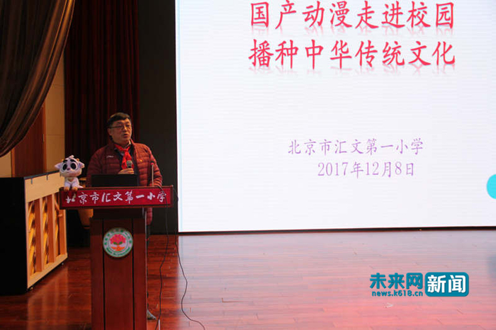 汇文第一小学校长跟孩子们分享他对国产动漫的情感。未来网记者周鑫/摄。