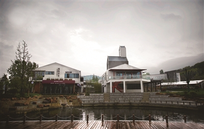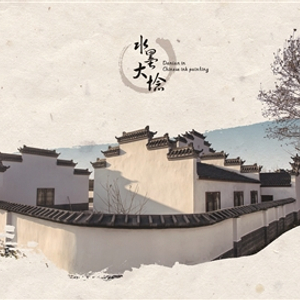 水墨大埝景区内自行车文化体验馆采用简中式风格设计,黑白相间的色调组合凸显出水墨画意境,整体建筑的方形布局和曲线元素的运用体现出自行车运动的竞技性和趣味性。