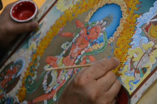 唐卡是藏文的音译,起源于西藏的一门古老艺术,具有鲜明的民族特点、浓郁的宗教色彩和独特的艺术风格。“热贡艺术”则是藏传佛教艺术的重要组成部分和颇具广泛影响的流派。