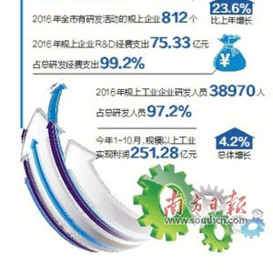 规模以上工业企业在科技研发中的作用,与其在中山经济中的占比密切相关。截至今年10月,全市有规模以上工业企业3090家。前十月,全市规模以上工业企业实现增加值1266.35亿元,同比增长7.3%;