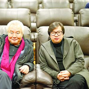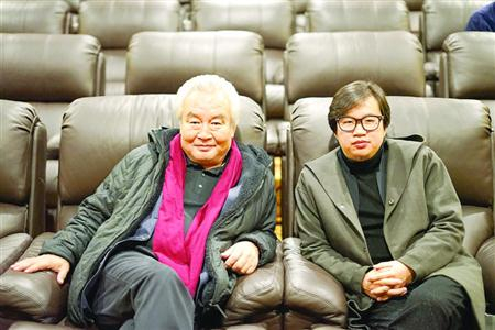 《老兽》主演涂们(左)和导演周子阳 /晨报记者 何雯亚