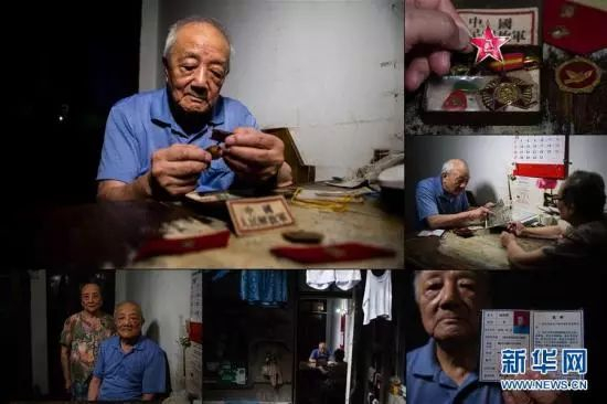 左上:祝再强在家中整理军旅生涯的老物件;