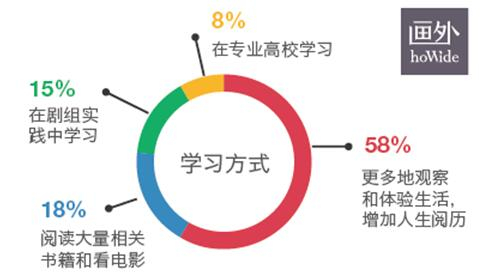 但是,这一群“高知”导演们,当被问到“认为电影导演最重要的学习方式是什么”的问题时,只有8%的受访者认为“在专业高校中学习”最为重要,而58%的受访者认为“更多观察和体验生活,增加人生阅历”才是成为导演的关键。在他们看来,学历虽然必要,但对生活的观察和感悟才是电影导演们最重要的课程。