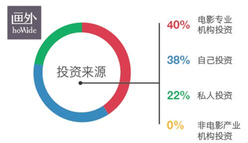 资金的窘境不止在生活上,也体现在事业上:在受访者们执导自己处女作的时候,只有40%取得了来自专业电影机构的投资,另外有22%的导演资金来自于私人投资者,没有人从非电影行业的机构拿到投资,高达38%的导演用了自己的钱来投入作品。