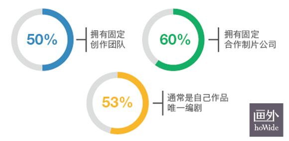 除了财务方面,青年电影导演们在团队方面也面临不少困难:尽管在当下中国电影产业中,电影导演属于资本和制片机构眼中最为稀缺的人才资源,但这些初出茅庐的受访者们,只有一半有固定的创作团队,不到三分之一成立了自己的制作公司,40%受访者属于没有固定合作制片方的“野生导演”,超过一半的电影导演通常也是自己作品的唯一编剧。