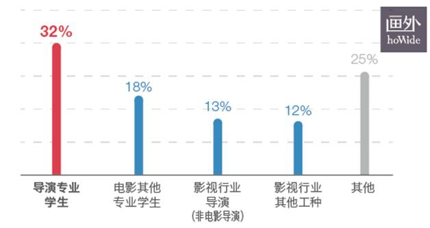 在成为电影导演之前,他们是做什么的?32%的受访者是“根正苗红”的导演专业学生,75%的受访者来自于电影产业,剩下的25%则在成为导演之前从事着小说家、摇滚乐手、教师、律师等五花八门的职业。