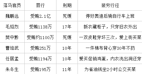 背心穿30年皮鞋穿烂3次 这些贪官还是落马了(图)