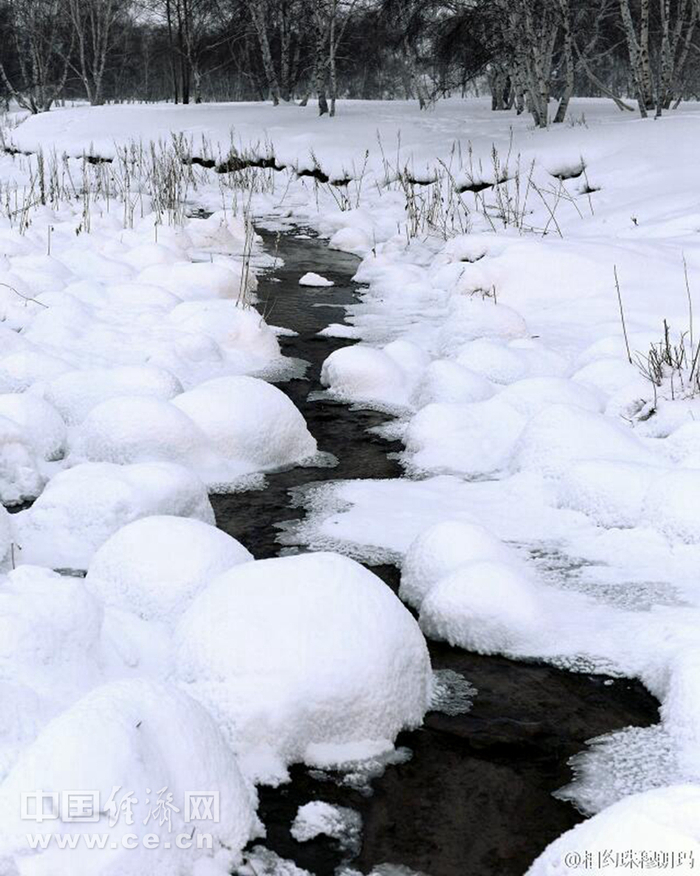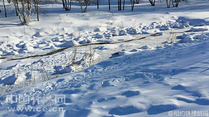 居然还有未封冻的小溪流过,叮叮咚咚流水声音不绝于耳。